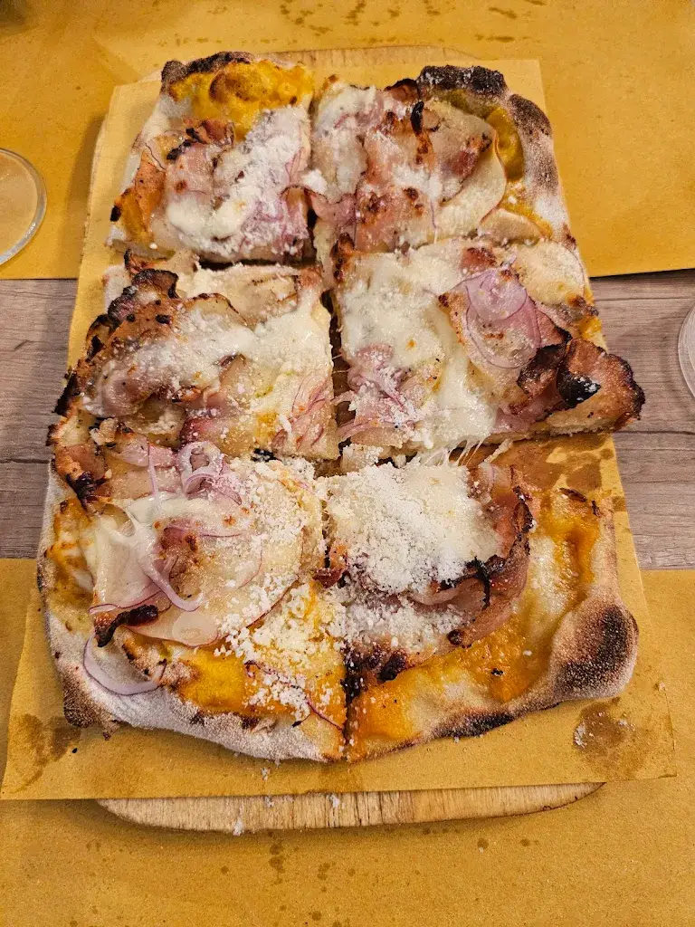 82 STREGA - (Mozzarella, Crema di Zucca, Mela, Cipolla, Guanciale, Pecorino) - € 7,50